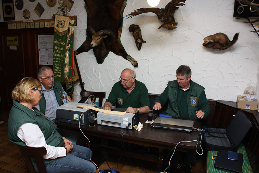 Nach Beendigung des Schiessbetriebs machten sich Kreisjugendleiter Bernd Schwarzer und Kreisschiesssportleiter Uwe Link an die Auswertung der Ergebnisse und so konnte pünktlich um 16.30 Uhr mit der Siegerehrung begonnen werden.