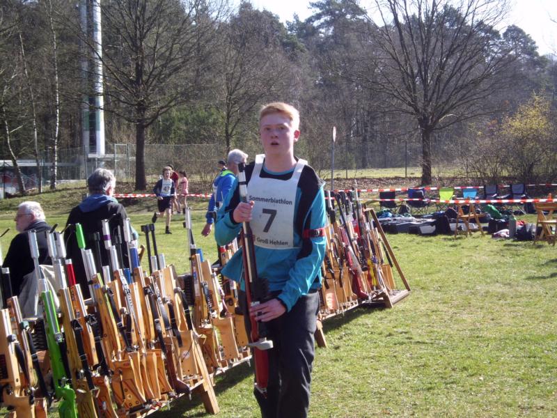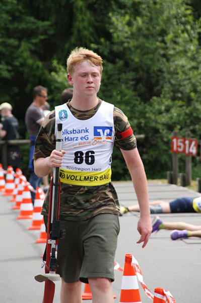 Leider mussten wir auf unseren derzeit besten Sportler bei der DM ,Jan Fischer, Altendorf, verzichten, da er sich bei den Deutschen Meisterschaften im Target Sprint in Suhl, wo er den 5. Platz belegte, verletzt hatte. Zur Zeit führt er noch die Juniorenklasse auf Landesebene im Sommerbiathlon als Bester an. Aber er fuhr mit, um seine Sportkameraden aus dem Kreis Holzminden zu unterstützen.
