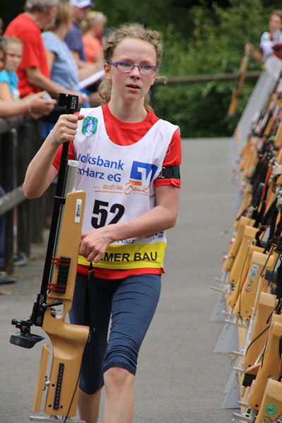 Jaqueline Schlue vom KSV Derental, reiste extra zum Sprintwettkampf mit der kompletten Familie aus dem Urlaub an. Für sie kam die Qualifikation für die DM doch sehr überraschend, da sie erst seit ein paar Monaten im Biathlonsport dabei ist. Trotzdem kann sie schon auf einige Erfolge zurückblicken. Zur Zeit steht sie noch auf Platz zwei in der Niedersachsen - Trophy in der Klasse der Jugend. Und mit ihrer Qualifikation für die Deutschen Meisterschaften hatte sie sich auch einen Platz im Leistungskader des KSV erkämpft. Vielleicht wird daraus ja noch mehr ??