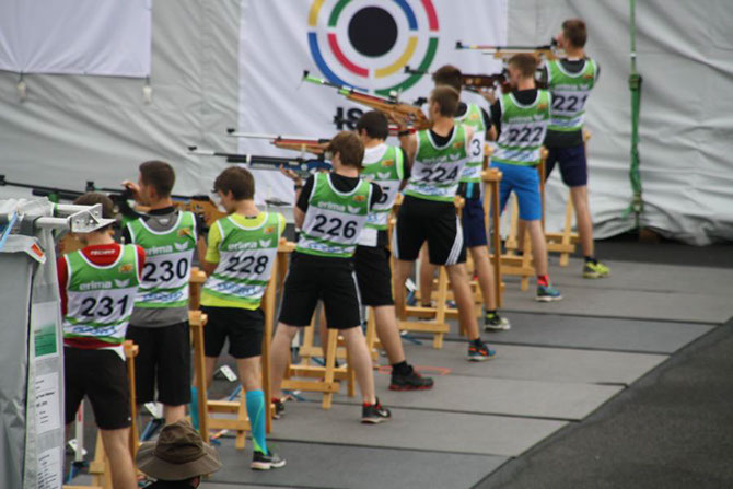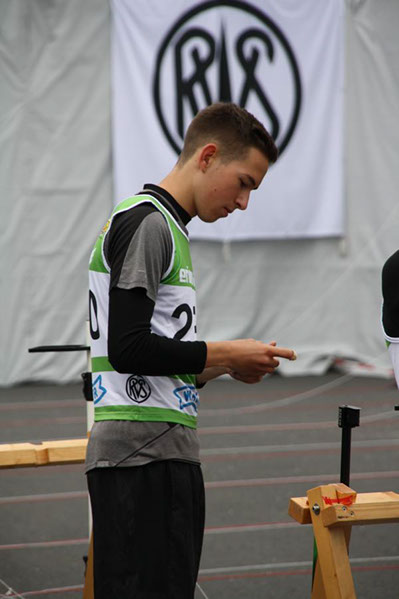 Jan Fischer hatte es mit einem sehr starken Starterfeld in der Juniorenklasse II zu tun. Hier starteten unter anderem Mitglieder des Bundeskader. Da jeder Schuss einzeln nachgeladen werden musste und stärkerer Regen eingesetzt hatte, konnte er bei der Feuchtigkeit die Schüsse nicht schnell genug nachladen. Trotzdem gelang ihm in diesem Rennen der 5.Platz. Für die WM - Quali erreichte er trotzdem genug Punkte um bei seinem 1. Wettkampf auf den 18. Platz vorzudringen.